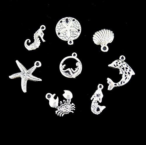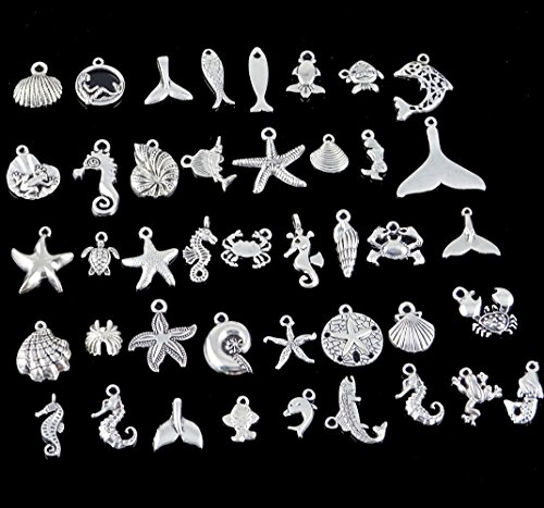 yueton Pack of 40 DIY Ocean Fish & Sea Creatures Charms Pendants for Making Bracelet and Necklace