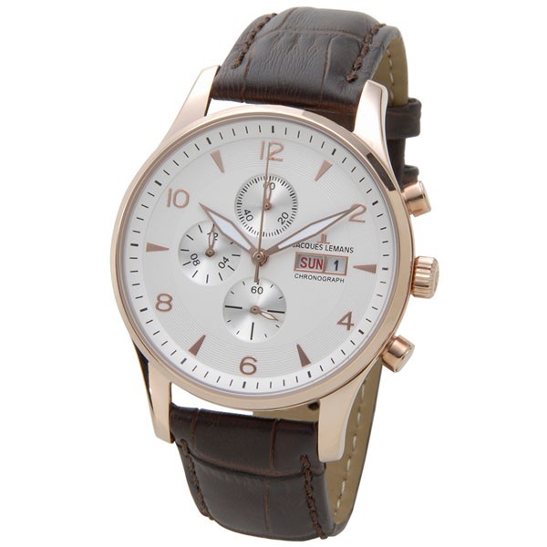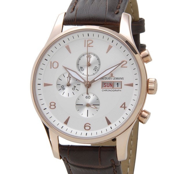 ジャックルマン JACQUES LEMANS クロノグラフ デイト クオーツ メンズ 時計 ウォッチ ホワイト/シルバー