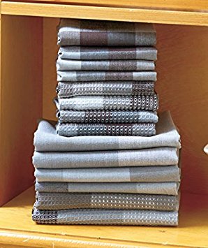 -. Title : 14 Pc Charcoal Gray Woven Cotton Kitchen Plaid Check Towel & Dishcloth Sets