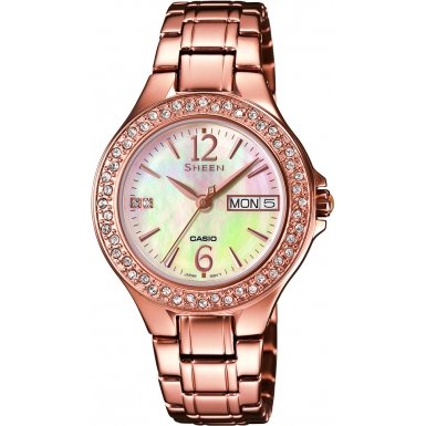 -. Title : Casio SHE-4800PG-9AUER Ladies Sheen Rose Gold Tone Steel Bracelet Watch