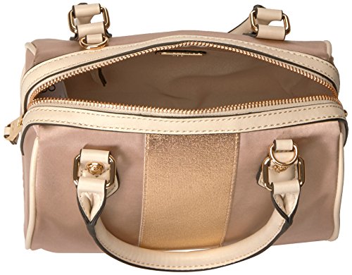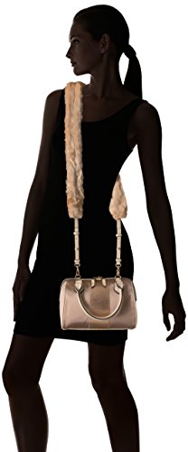 Product DescriptionSmall satchel bag with faux fur crossbody strap and satin stripe detail0