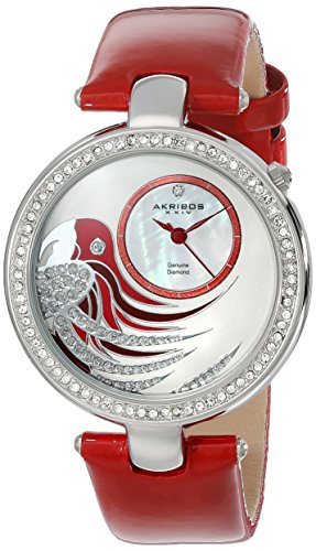 Akribos XXIV Women's AK602RD Lady Diamond Parrot Dial Swiss Quartz Leather Strap Watch