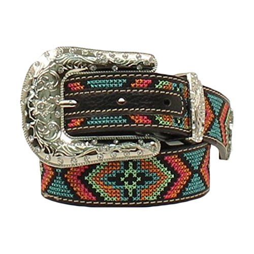 -. Title : Nocona Girl's Colorful Stitching Rhinestones Belt, Black, Multi Color, 28