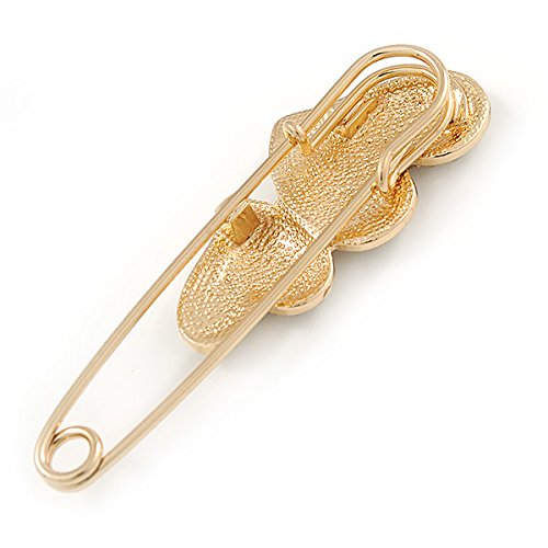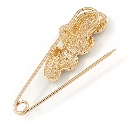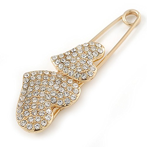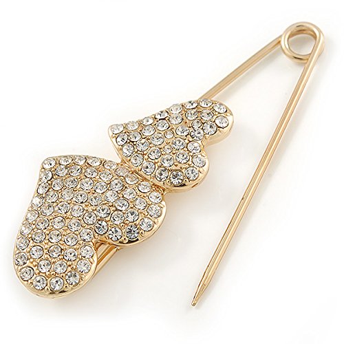 -. Title : Gold Plated, Clear Crystal Double Heart Safety Pin Brooch - 70mm L