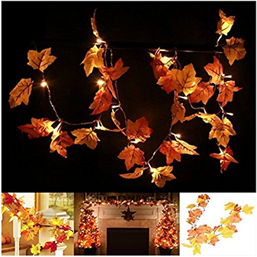 -. Title : Thanksgiving Halloween Decorations, LED Maple Leaves String Light Lamp Autumn Leaf Garland Battery Powered Decor