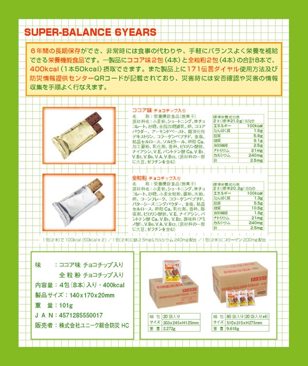 【商品名】防災備蓄用食品 スーパーバランス 6YEARS (1箱20袋入)