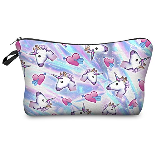 Hellathund Super Funny 3D Printing women cosmetic bag Multifuncition Pencil Holder (heart unicorns)