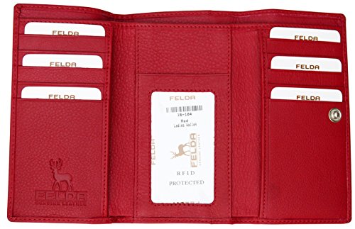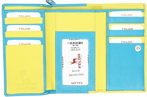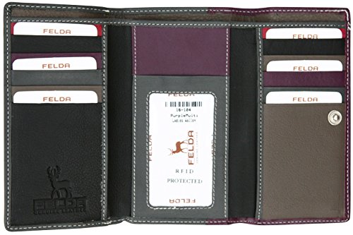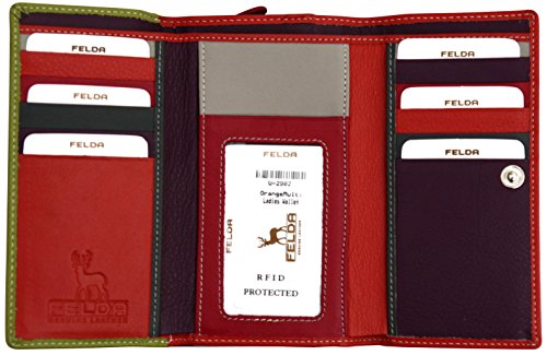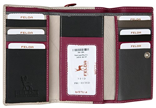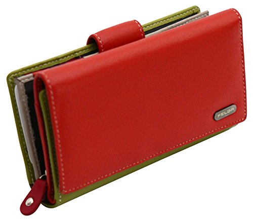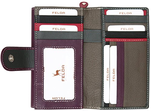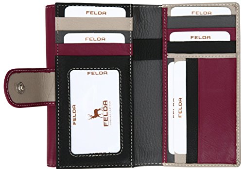 Felda Damen Geldborse aus Echtleder mit 19 Fachern - RFID-Blocker