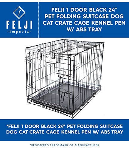 -. Brand : Felji -. Color : black -. EAN : 0806808502087 -. Feature : Black 24" 1 Door Pet Folding Suitcase Dog Cat Crate Cage Kennel Pen w/ABS Tray / Features: Folds down easily - take it anywhere! Size: 24"(L) x 17"(W) x 19"(H). Fully assemblied. Just open and fold. Rounded Edges - Safer for puppy Material: low carbon steel wire Durable Electro-Coat Finish Two doors for each cage, one on the side, one on the front. Tough Coated ABS Pan: Deluxe and Easy to clean! No Divider This Felji Crate is designed for ultimate versatility in any situation. Felji is recognized for offering quality pet suppliers in low price / note; Like any wire cage, this cage is designed for well trained dog who will enjoy to stay inside, your dog can break out the cage and hurt himself if the pet is not well cage trained. We can not be responsible for the damage your dog create during and after he/she break out from the cage. / Type: Folding Suitcase Style; Size: 24 inch; Color: Black. -. Label : Felji -. Manufacturer : Felji -. MPN : F0916 -. PackageQuantity : 1 -. PartNumber : F0916 -. ProductGroup : Pet Products -. ProductTypeName : PERSONAL_CARE_APPLIANCE -. Publisher : Felji -. Size : Small (24") -. Studio : Felji -. Title : Felji 1 Door Black 24" Pet Folding Suitcase Dog Cat Crate Cage Kennel Pen w/ ABS Tray -. UPC : 806808502087