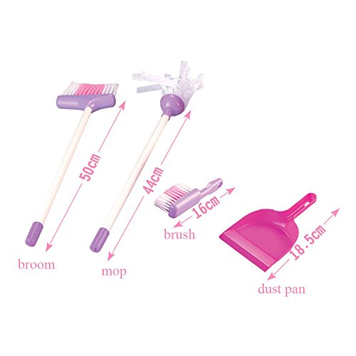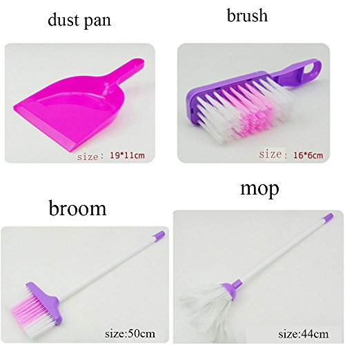 Product DescriptionKid's Housekeeping Cleaning Tools Set,4 Pieces Your child can do real cleaning with this miniature set of 4. A mini broom, mini mop.mini brush and matching mini shovel. Great for ages 24 months and up.0