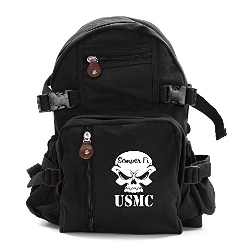 -. Title : USMC Semper Fi Skull Marine Corp Army Sport Heavyweight Canvas Backpack Bag