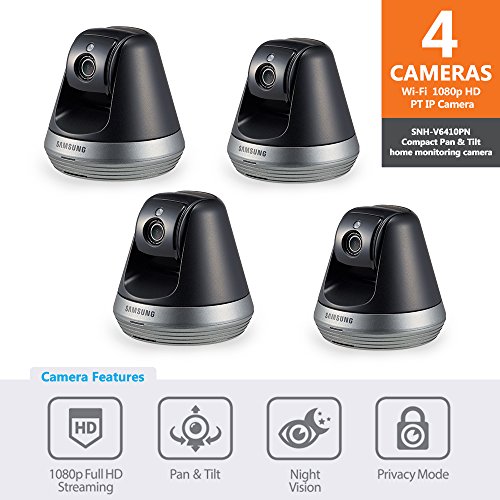 Samsung SNH-V6410PN SmartCam Pan/Tilt Full HD 1080p Wi-Fi IP Camera Bundle Quad Pack