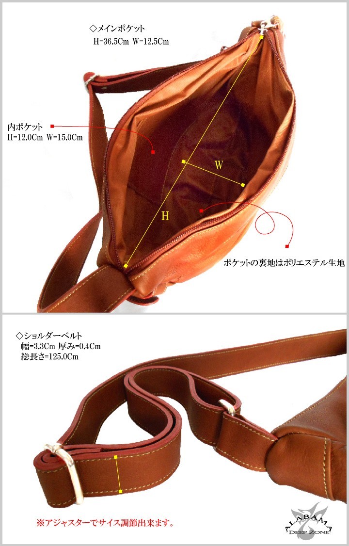 Deep Zone ワイルドでセクシーを上品にまとめる男のレザーブランド。 自分買いからプレゼントにも人気でオススメです。一流革職人がハンドメイドで仕上げられた、 本革 レザー ボディバッグ、ワンショルダーバッグ【素材】 牛革 金具:合金製 【サイズ】高さ:約23.0cm 幅:約36.0cm マチ:約11.0cm【カラー】キャメル・ブラックキメの細かい上質の牛革を使用しています。両サイドとセンターにベルトのモチーフがアクセント!ワイルドに作成されたメインポケットは、長財布等普段持ち歩く小物も余裕をもって収納可能。財布、スマートフォン、車のキーや手帳、等の小物をスタイリッシュに持ち運びできます。ショルダーベルトは長さ調整は可能。シンプルマインドに可愛さと大人の高級感を表現しており使い込むほどに渋味が出て末長く愛用出来ます。本革 メンズ レザー ボディバッグ ワンショルダーバッグ 男女兼用