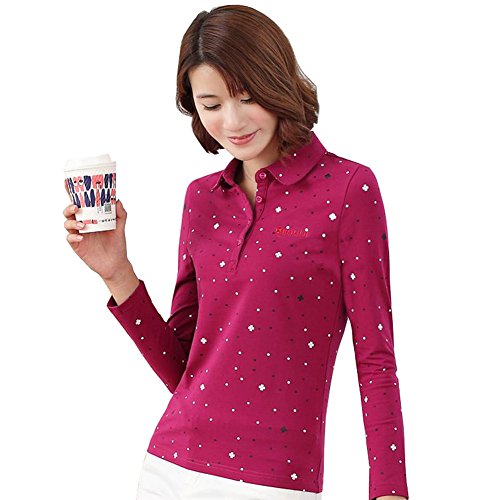 -. Title : FEVON ポロシャツ レディース スポーツ Tシャツ 春秋 長袖 スキッパー 折り襟 カジュアル 花柄 スリム 着痩せ スポーツウェア ゴルフウェア トップス カットソー コットン ストレッチ 事務服 オフィス制服 大きいサイズ