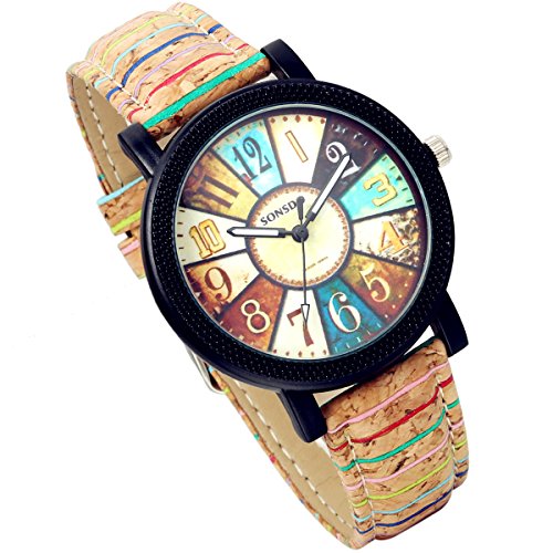 -. Title : Lancardo Cathedral Glass Color Dial Wood Grain Leather Band Analog Quartz Watch