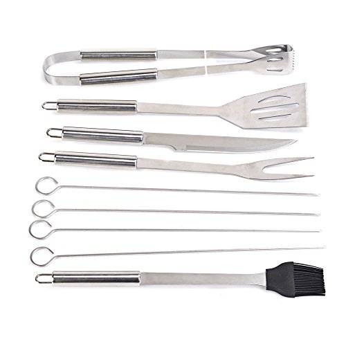 - Complete Kits, Versatile and Functional --- these BBQ tools set consist of the common tools in BBQ, including knife, fork, spatula, power tongs, silicone basting brush, hand four skewers. It can meet all of your demands in grilling.