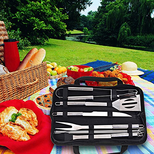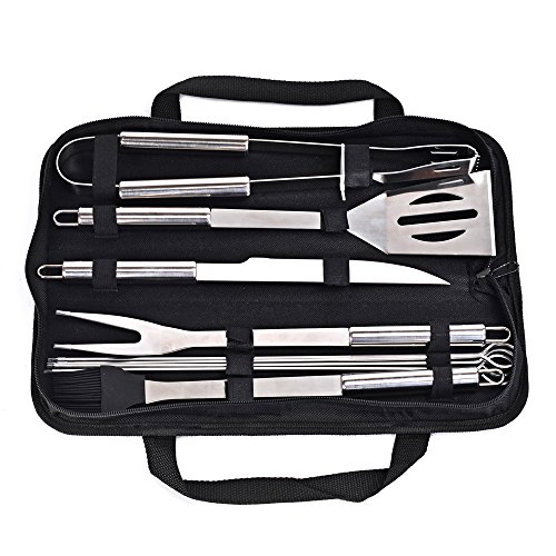 - Practice Design, Comfortable Carrying --- 9 piece barbeque grill tools set in an oxford fabric zipped bag, which holds tools firmly and organized. You can easily take it anywhere, and it is perfect for traveling and storage.
