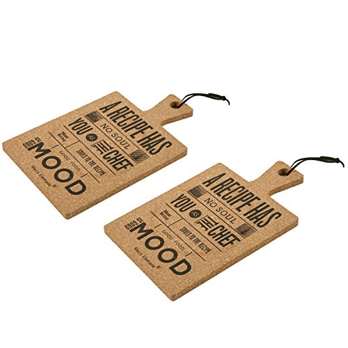 Kitchen Cork Board Paddle Design Trivet, Heat Resistant Hot Pot Pad Placemat Holder with Handle, Set of 2