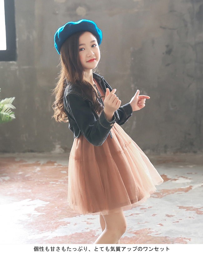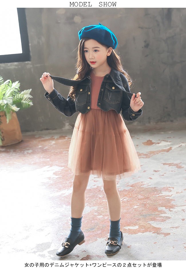 デニムジャケット 女児 チュールワンピ 2点セット 女の子 長袖ワンピース ジャケット ジュニア セットアップ 春秋物 子供服女の子用のデニムジャケット+ワンピースの2点セットが登場カッコイイデニム素材と糖度高めのチュール素材の組み合わせでオシャレ度抜群トレンディーなロック風の配色も注目すべきポイント個性も甘さもたっぷり、とても気質アップのワンセットカラー:写真色素材 綿混紡 ポリエステルサイズ(cm) 110 120 130 140 150 160110 ジャケット 着丈28 バスト68 ワンピース 総丈59 バスト56 肩幅24120 ジャケット 着丈30 バスト72 ワンピース 総丈64 バスト60 肩幅26130 ジャケット 着丈31 バスト76 ワンピース 総丈69 バスト64 肩幅27140 ジャケット 着丈33 バスト80 ワンピース 総丈74 バスト68 肩幅29150 ジャケット 着丈34 バスト84 ワンピース 総丈79 バスト72 肩幅31160 ジャケット 着丈36 バスト88 ワンピース 総丈84 バスト76 肩幅33ご注意:※サイズは平置きサイズです。素人採寸ですので、若干の誤差がございます、ご了承く