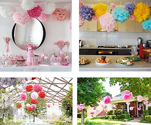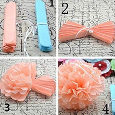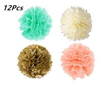 - Sizes and Colors-Tissue paper flowers come in size 8inch, 10inch, 12inch. All the decoration elements are bright and vivid with a proper combination of mint, peach, cream, pink and gold glitter, which can light up your party
