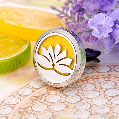 HooAMI Car Air Freshener Aromatherapy Essential Oil Diffuser - Lotus Flower 316L Surgical Stainless Steel Locket With Vent Clip