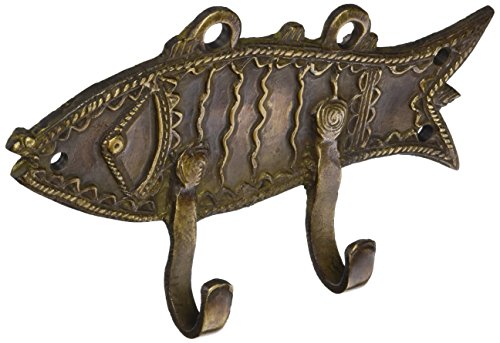 EYES OF INDIA - 6" Brass Fish Decorative Wall Hangers Hooks Coat Rack Bronze Antique Bohemian Bo