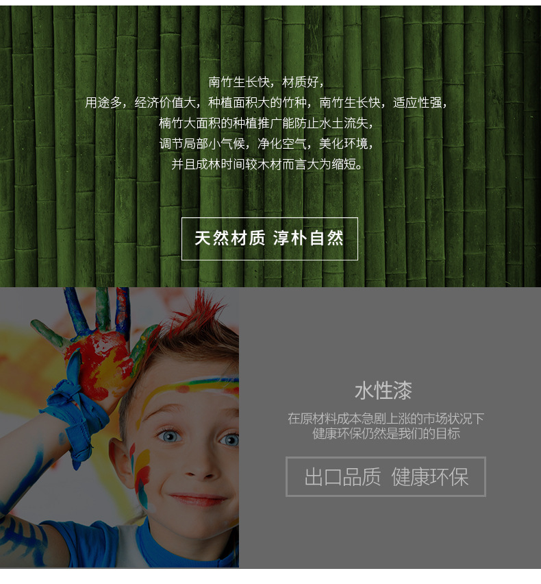 产品信息:板为竹制,水性漆喷涂,健康环保