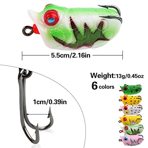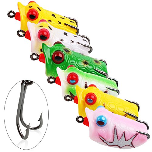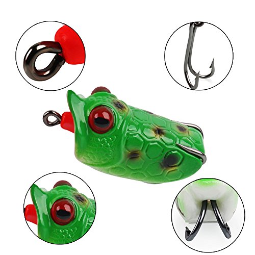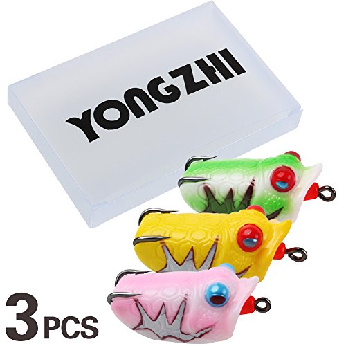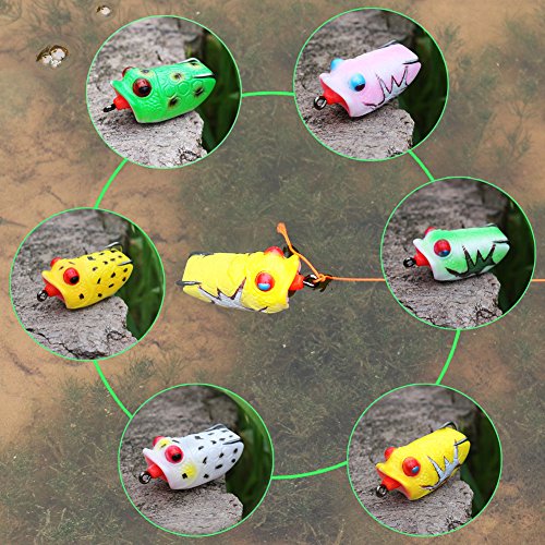 -. Binding : Misc. -. Brand : YONGZHI -. Feature : Frog fishing lures is one of the most weedless lures available and it's design is perfect for fishing in or on top of thick vegetation and brush. / The frog lure is a topwater lure; and should be used accordingly. While topwater baits can be effective in many different conditions and situations. Typically they work best in warmer water situations with surface temps from 60 to 80 degrees. / Popper Frogs work best in places where they are a natural prey of bass. Typically this will be shallow water area's with thick vegetation such as weeds, matts, lily pads or thick brush and stumps. / The darker colors, black, amber or darker green for dark water or low light situations and lighter or natural colors for clear water situations / length of body: 2.0inch; length of tail:2.35inch;weight:0.24oz; package:pack of 5 in a plastic box -. ProductGroup : Sports -. ProductTypeName : SPORTING_GOODS -. Title : Fishing Lures Topwater Floating Weedless Lures Frog Baits with Double Sharp Hooks Soft Baits for Bass Snakehead Salmon Freshwater Saltwater Fishing (Mix Style)…
