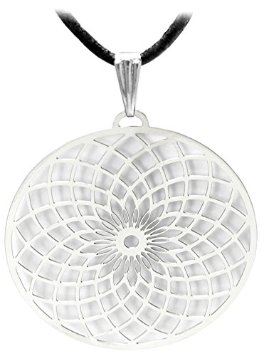 Kaltner Prasente Geschenkidee - Lederkette fur Damen und Herren mit Sahasrara Anhanger Edelstahl (Ø 38 mm)