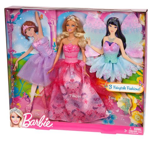 Comes with 3 fantastical fashions-a princess, a ballerina, and a fairy