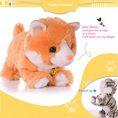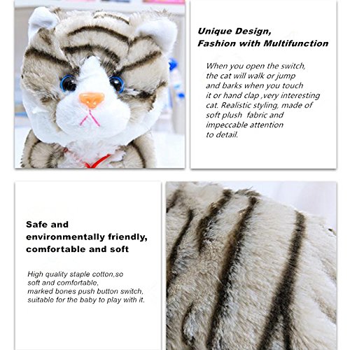 HIGH QUALITY & SAFTY APPROVED:Battery Operated Sound Control Interactive Toy Cat,Battery compartment hidden design in the abdomen, switch cleverly arranged bones, very interesting.High quality and eco-friendly.Most safe,softable and reliable for the Baby&Kids.