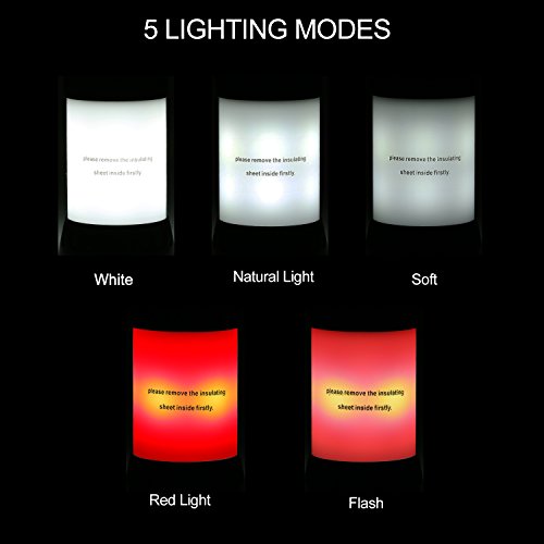 5 LIGHTING MODES: Strong, Medium, Weak, Red and Red Flashing. When there's an emergency, the red light and red flashing offers easy visual alerting from far distances.Ideal for emergency events, hurricane, power outages, car repairing, camping, fishing, or other outdoor and indoor activities.