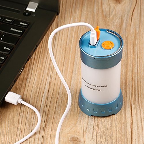 Rechargeable Battery: This rechargeable camping lantern comes with rechargeable battery, power charged via USB port.Please open the battery port and remove the round white circle of paper (Insulation sheet) on the battery before first use. Otherwise this lantern will not work.