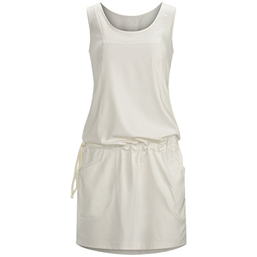FEATURES of the Arcteryx Women's Contenta Dress Non-wrinkle polyester textile with mechanical stretch is quick drying and provides sun protection (UPF 50) Elastic drawcord at hip, dropped waistline Shaped hand pockets, zippered security pocket Gel BIRD logoFeature