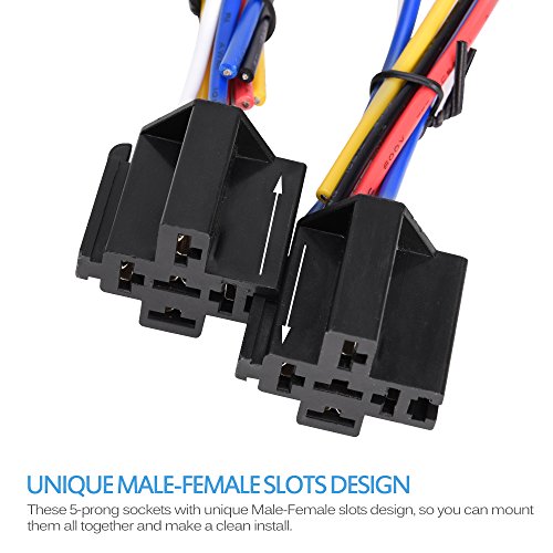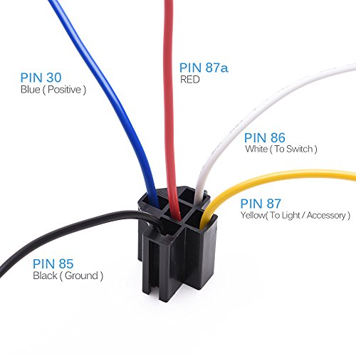 Simple Easy Wiring - the relay sockets come with color-labeled wires for loads/accessories convenient wiring. White (common), Black (normally closed), and Yellow (normally open).