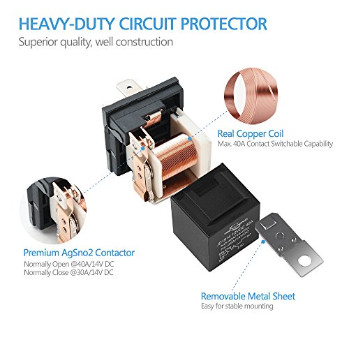 Max. 40A Contact Switching Capability, Normally Open @40A/14V DC and Normally Close @30A/14V DC.Suitable for MICTUNING Heavy Duty(HD) LED light bar wiring harness kit.