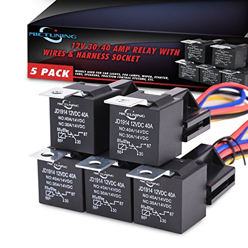 MICTUNING 12V 30/40 Amp 5pin SPDT Automotive Relay with Wires & Harness Socket Pack of 5