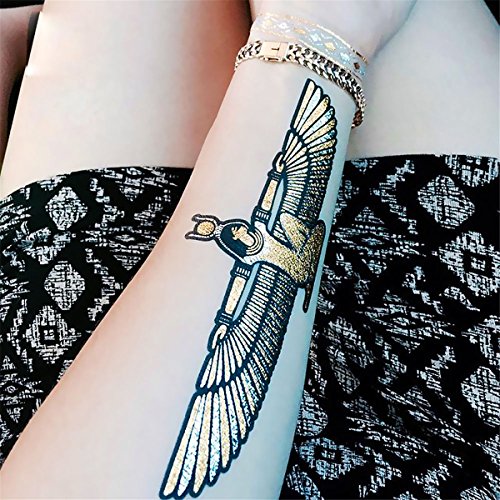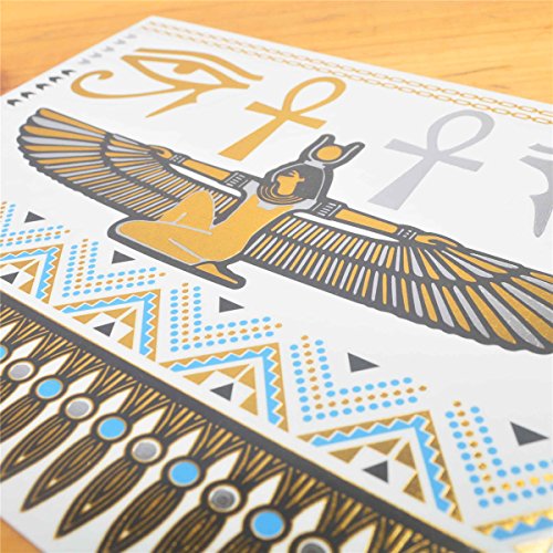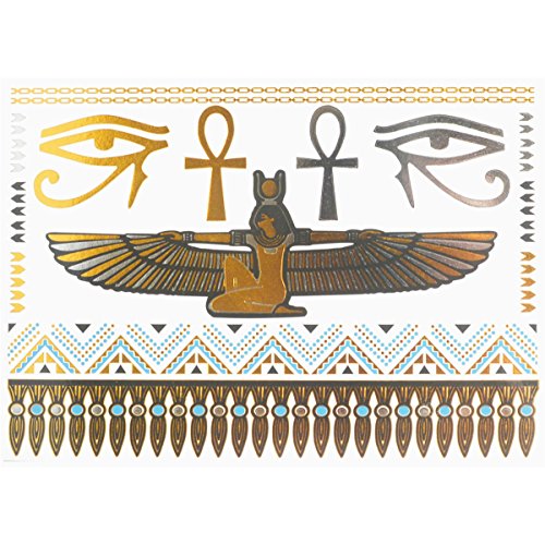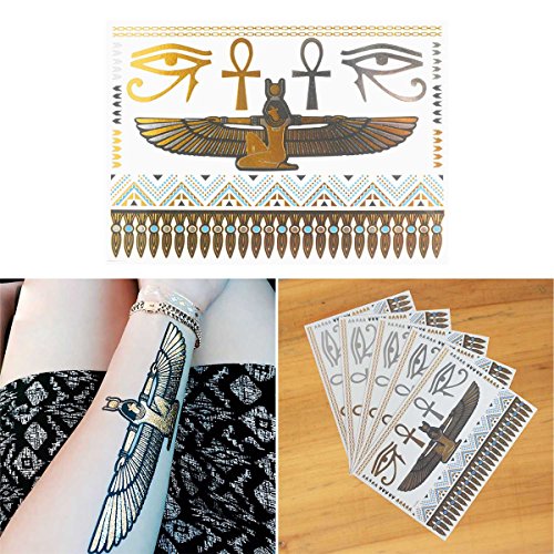 COKOHAPPY 5 Sheets Egyptian Cleopatra Ankh Cross Eye of Horus Gold Silver Flash Metallic Temporary Tattoo
