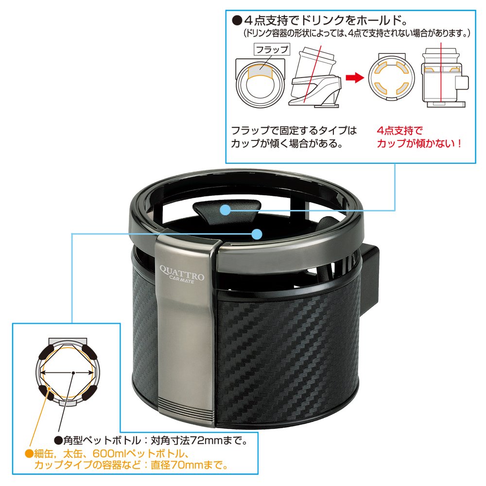 Carmate convenience store coffee in the four-point support is not inclined drink holder quattro carbon style & amp Black plating DZ265