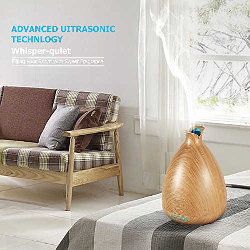 URPOWER Essential Oil Diffuser 130ml Ultrasonic Aromatherapy Oil Diffuser with Adjustable Mist Mode Waterless Auto Shut-off and 7 Color Changing LED...