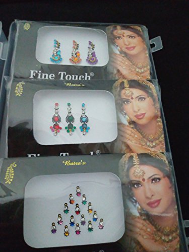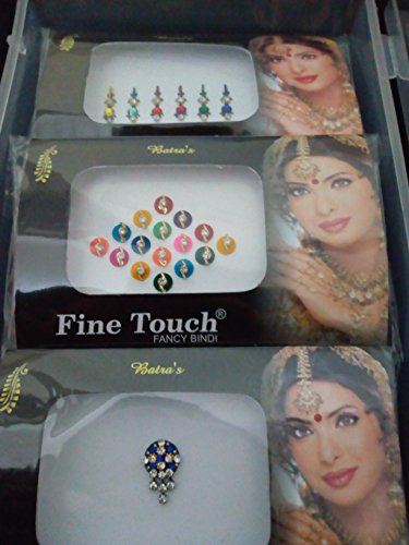 Multi Colored, Different Designs with Sparkling Crystals, Rhinestone,Glitter Art Work which gives you a wide variety to choose your Bindis as per Occasions with your Costume.