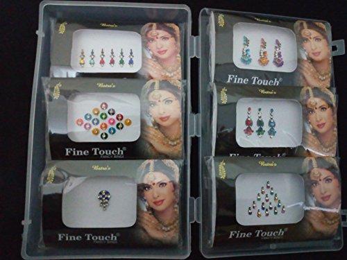 Bindi Pack of 6 Different Multicolored rhinestone forehead stickers/ . 44 stickers in count. with one free multicolored sticker packet (30 stickers) With STORAGE Box.
