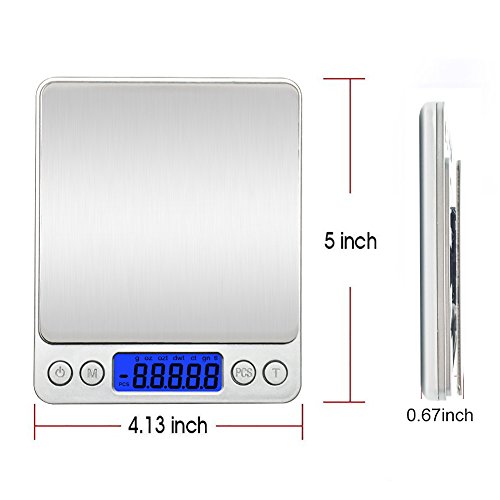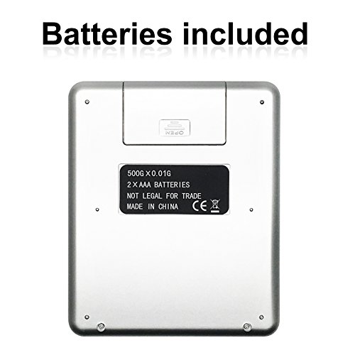 Kitchen Scale, Digital Pocket Jewelry Weight Compact Scale, FlatLED, Kitchen food Scale, Kitchen Scale, Lab Weight, Tare, Stainless Steel, Backlit Display 0.001oz /500g/0.01g(Silver)
