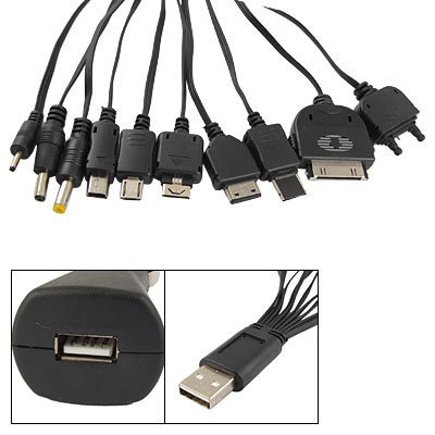 One USB charging cable comes with 10 connectors compatible with many cellphone