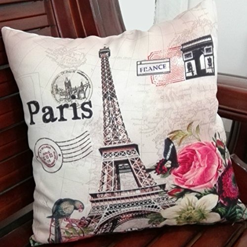 OJIA Retro Vintage Paris Eiffel Tower Home 18 X 18 Inch Cotton Linen Decorative Throw Cushion Cover / Pillow Sham