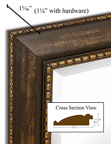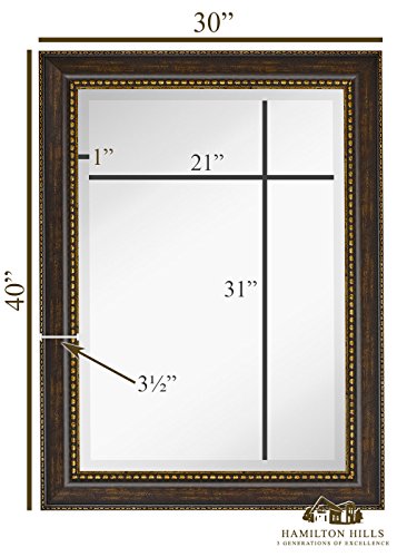 SOPHISTICATED DESIGN: A taste of old world and opulence with our 30" x 40" antique like mirror framed wall mirror. Our premium, large, rectangular, mirror is surrounded by an dark rich color pallet of classical framing. The hand cut and assembled frame surrounds a clear beveled glass mirror center. The large glass mirror is secured with our reinforced corner bracing for added stability. Avoid the warping and distortion found in cheaper brands.