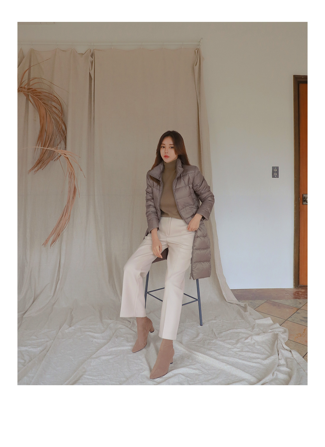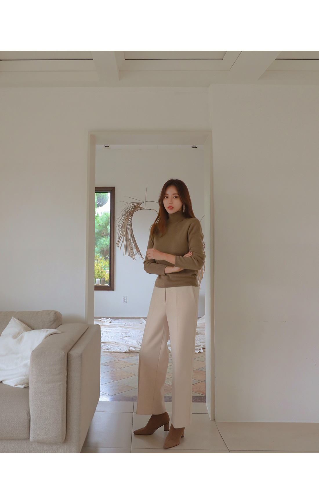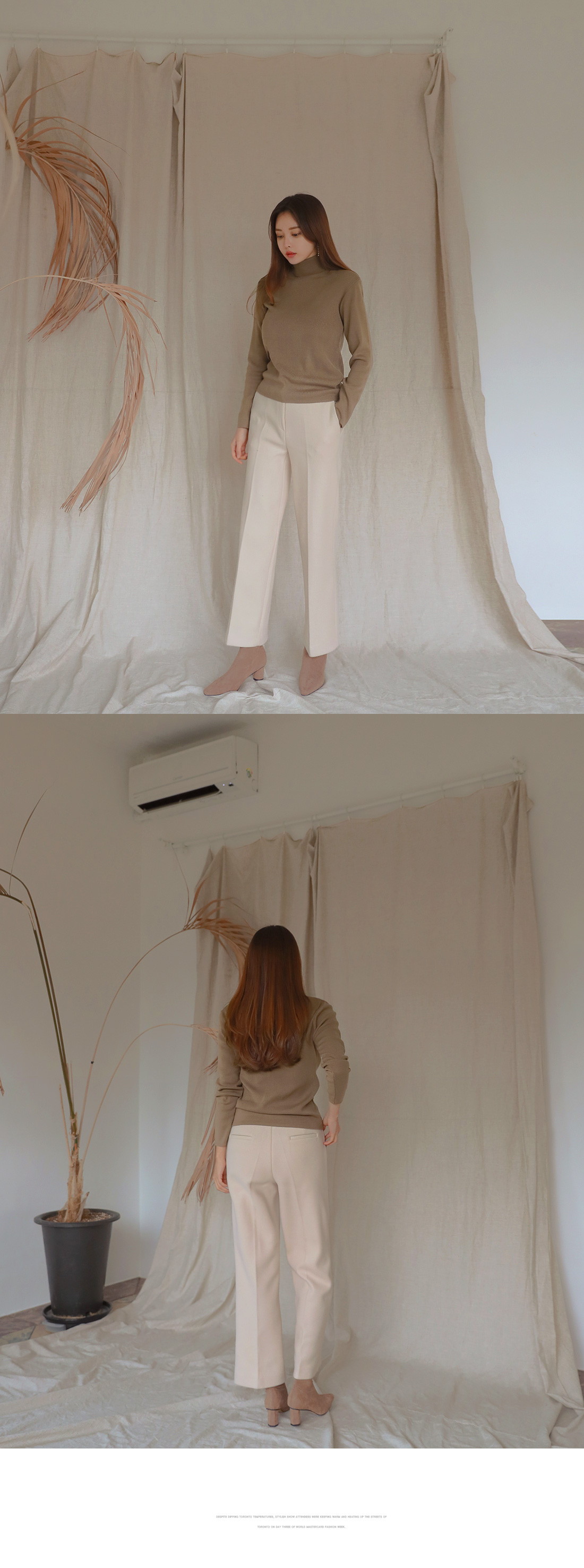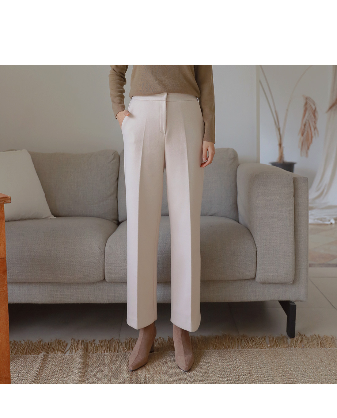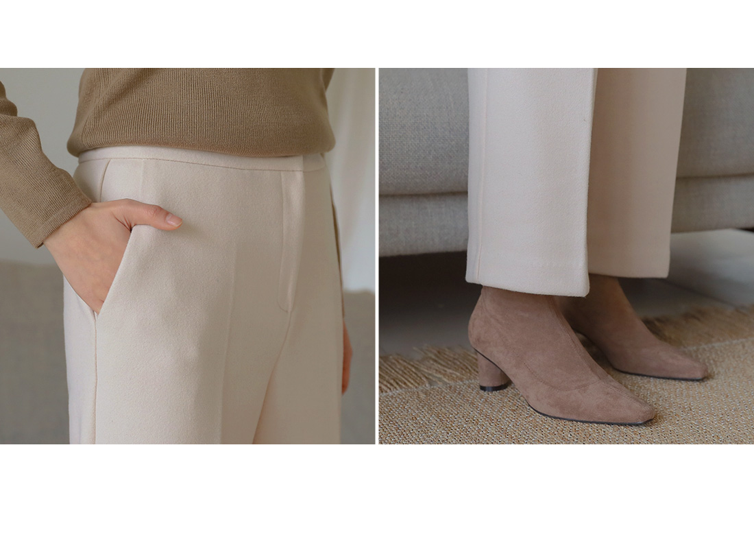 MD COMMENT 울 함량으로 부드러운 착용감을느끼실 수 있는 와이드한 슬랙스를 소개해드릴게요-부드럽고 적당히 도톰한 원단으로 보온성을 챙겨주면서 와이드하게 일자로 떨어지는 라인이 체형커버 효과를 준답니다.사이드 리얼포켓으로 실용성을 챙겨주면서뒷 부분의 페이크 포켓으로 디자인을 더했어요.약간의 신축성으로 장시간 착용에도불편함이 없으면서 전체적으로 군더더기 없이 심플해서 다양한 룩에 스타일링 하기 편하구요,오피스룩이나 페미닌룩으로도 활용가능한 슬랙스에요.니트나 맨투맨에도 캐주얼하게 스타일링 가능한 아이템이니 추워지는 날씨에 톡톡한 슬랙스를 찾으신다면 얼른 초이스하세요-!COLOR/SIZE 아이보리,그레이,블랙S,M,LMODEL FITTING 아이보리/M