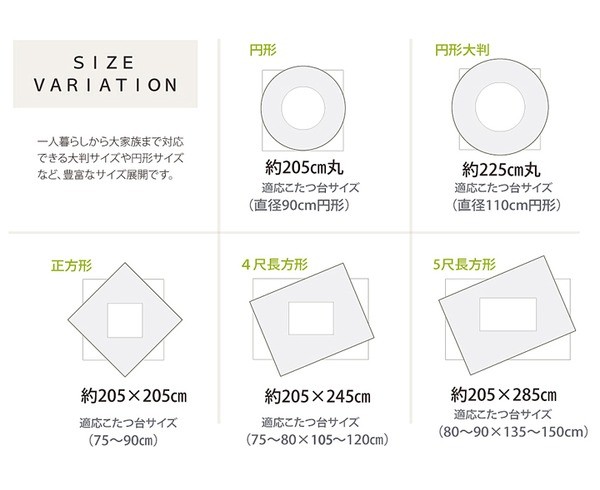 【適応サイズ】75~90cm角のこたつ台に適応