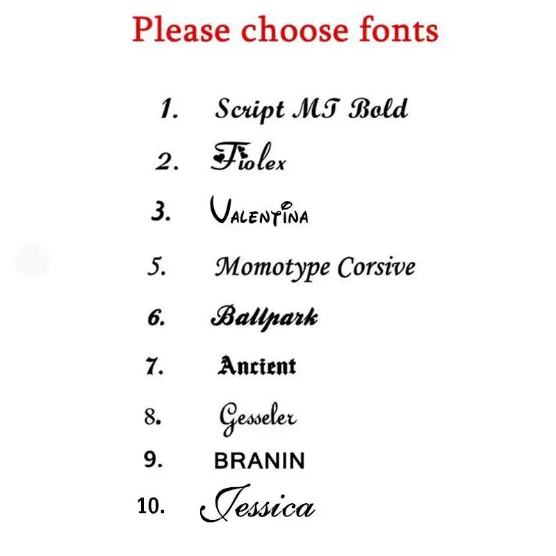 こちらの商品はカスタマイズ商品です。商品注文時、配送要請事項にお望みのお名前(英語)、またフォント番号をご記入願います。
