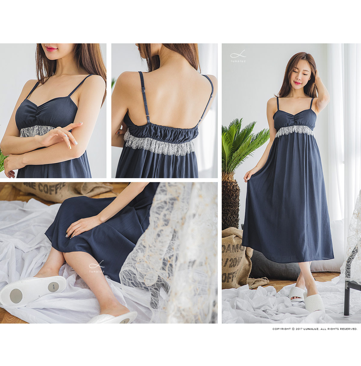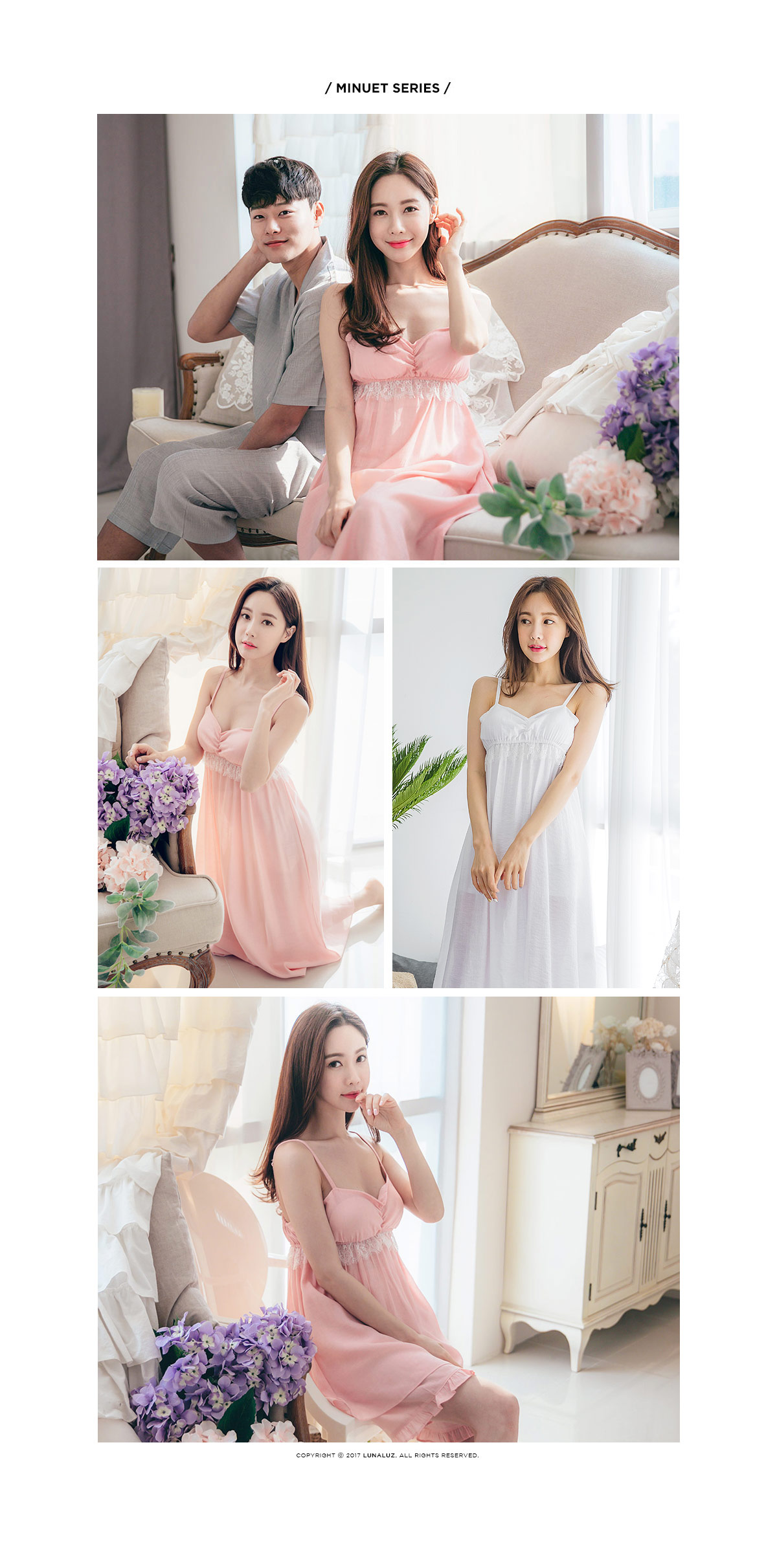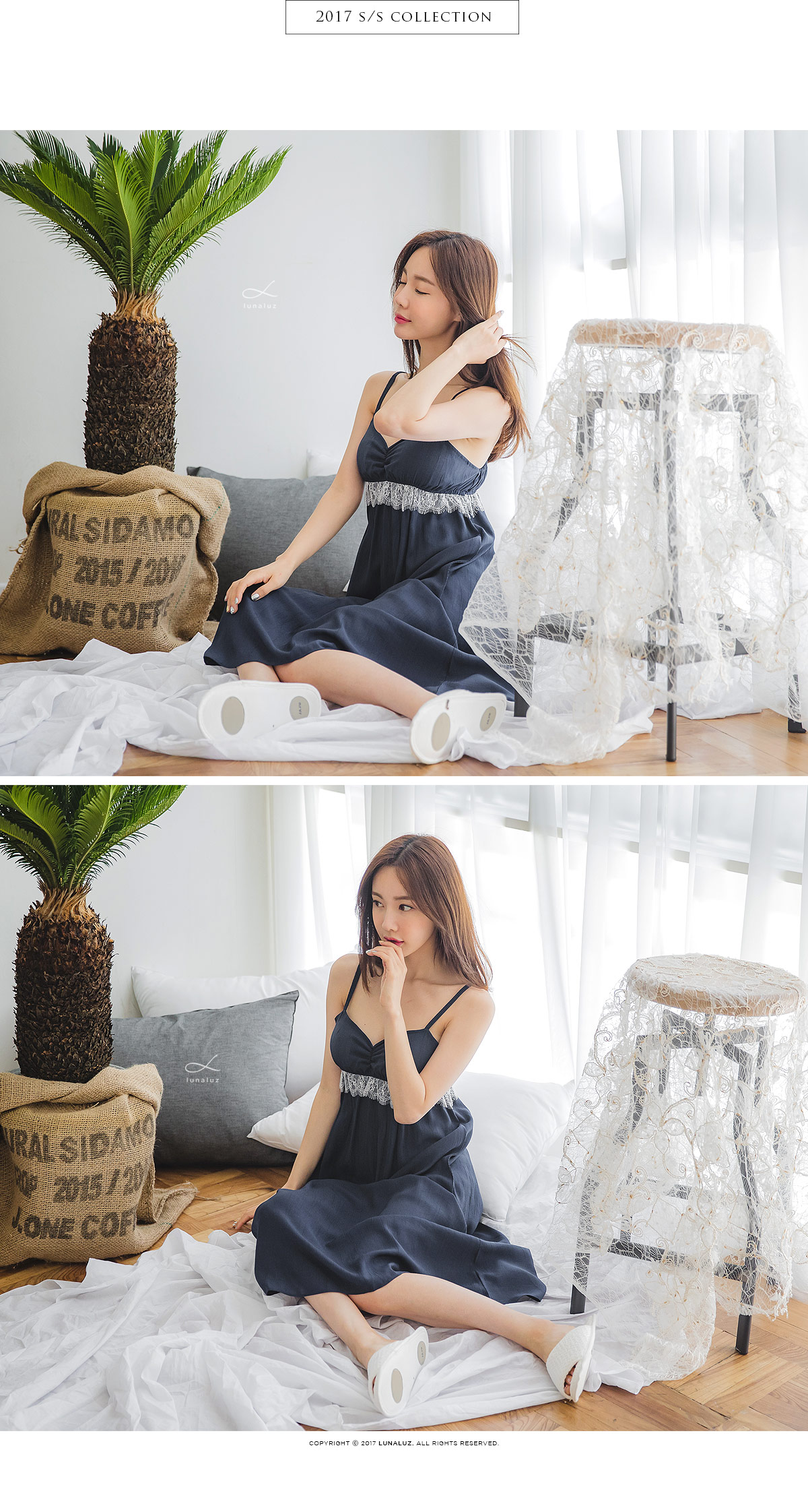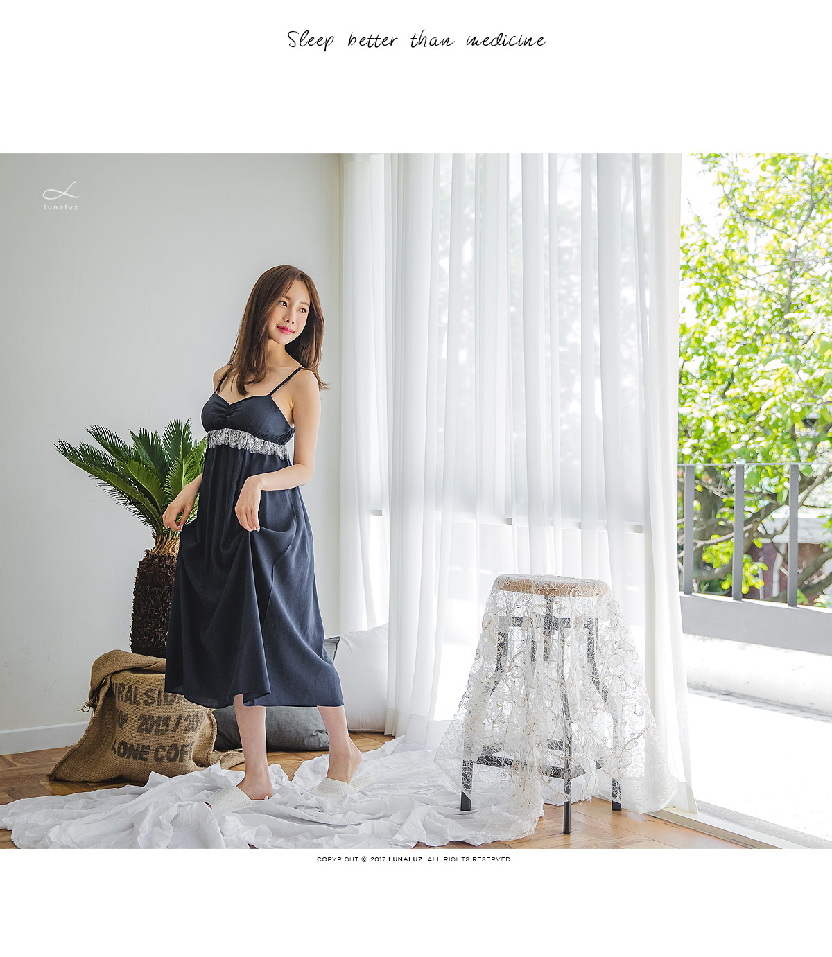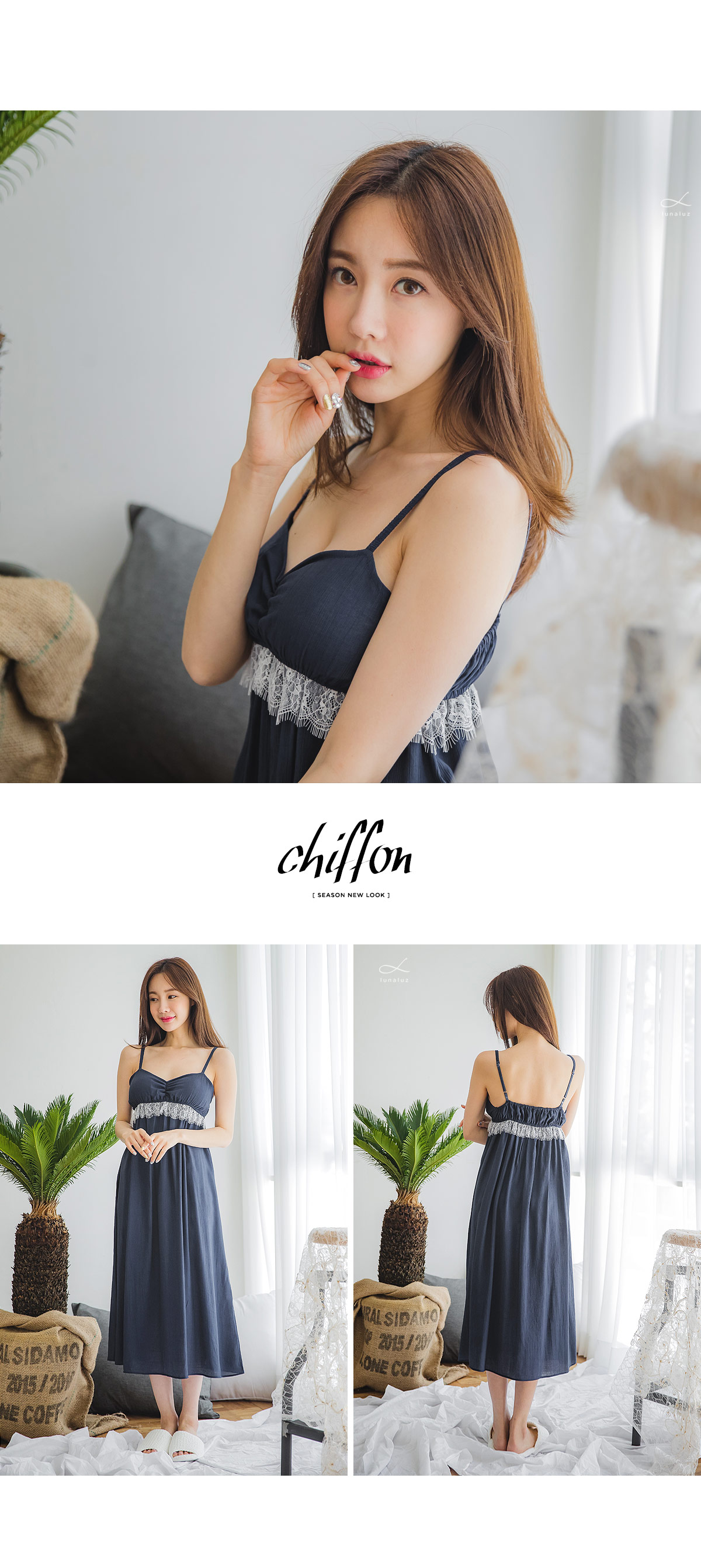 하늘거리는 소재로 우아하고 페미닌한 무드가 풍기는 ‘미뉴엣 롱 드레스 슬립웨어’입니다^^ 쉬폰 원단에 요루 가공을 하여 일정한 간격으로 가공을 주어 주름을 준 소재로 화사한 색감과 유니크한 소재가 조화롭게 어우러진 롱 드레스에요. 통기성이 좋고, 가벼워 더운 여름 편안하게 착용하기 좋아요. 찰랑거리는 소재로 화사함을 더 해줍니다. 섹시하게 셔링을 잡아준 바스트 라인은 밑 부분에 밴딩을 넣어주어 좀 더 볼륨감 있어 보입니다. 캡을 넣어주어 브라를 착용하지 않고, 편하게 입을 수 있도록 제작하였습니다. 둘레에 하늘 거리는 화이트 레이스 장식을 넣어주어 분위기를 한 층 더 살려주었어요. 어깨끈은 조절 스트랩으로 체형에 맞게 조절하여 입으실 수 있습니다. A라인으로 떨어지며 가볍고 시원하게 입을 수 있는 홈웨어입니다. 컬러감과 유니크한 소재, 디자인이 굉장히 고급스럽습니다. free사이즈로 평균 44반~66size까지 입으실 수 있는 패턴입니다. 100%국내 제작으로 소재, 봉제, 디자인면에 퀄리티가 높습니다.